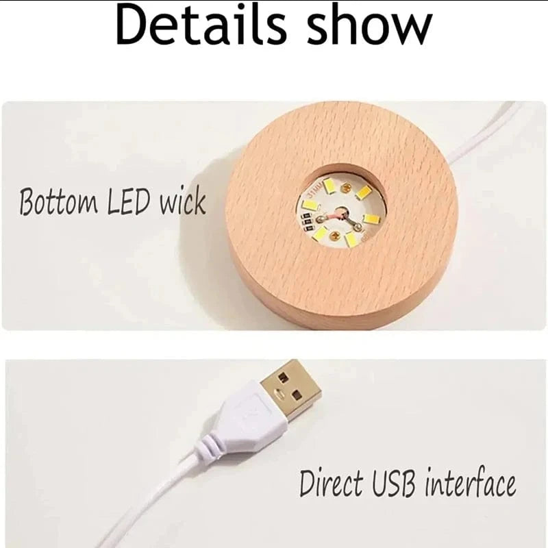 Soft LED illumination built into the base highlights the etching at night