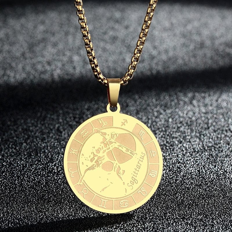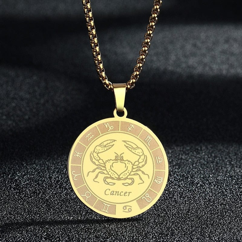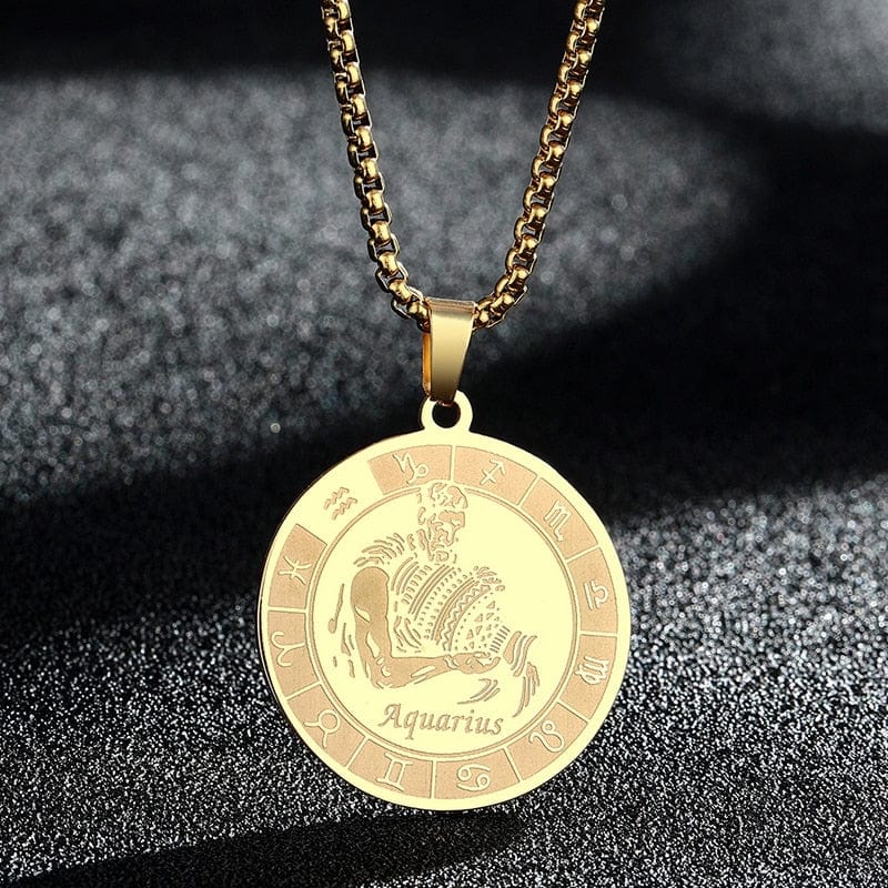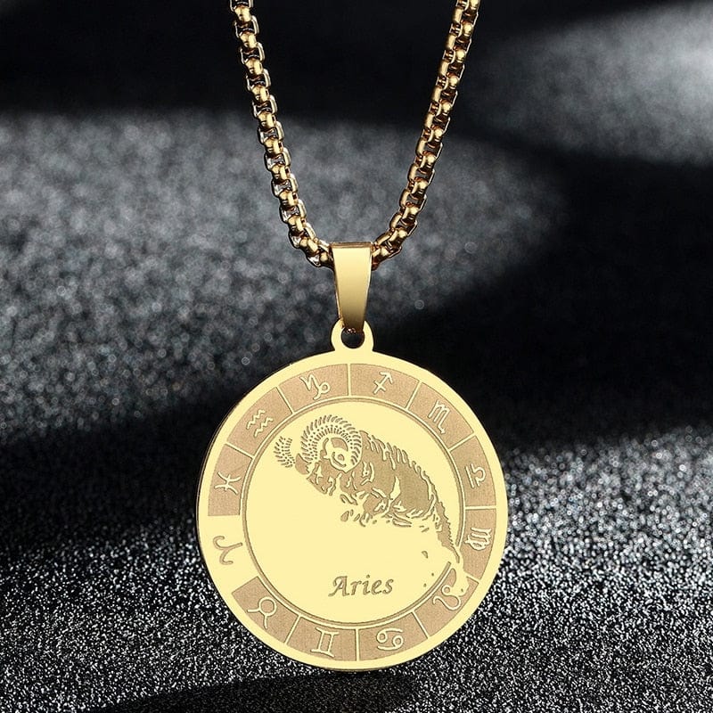 12 Constellation Disc Style Zodiac Pendant Necklace