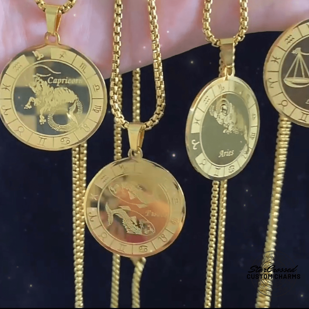 One of the best conversation starters is "What's your zodiac sign?". Our beautiful, eye catching "12 Constellation Disc Style Zodiac Pendant Necklace"Ā are the perfectĀ  introduction to you! Comes in gold and silver! Compliments every look!