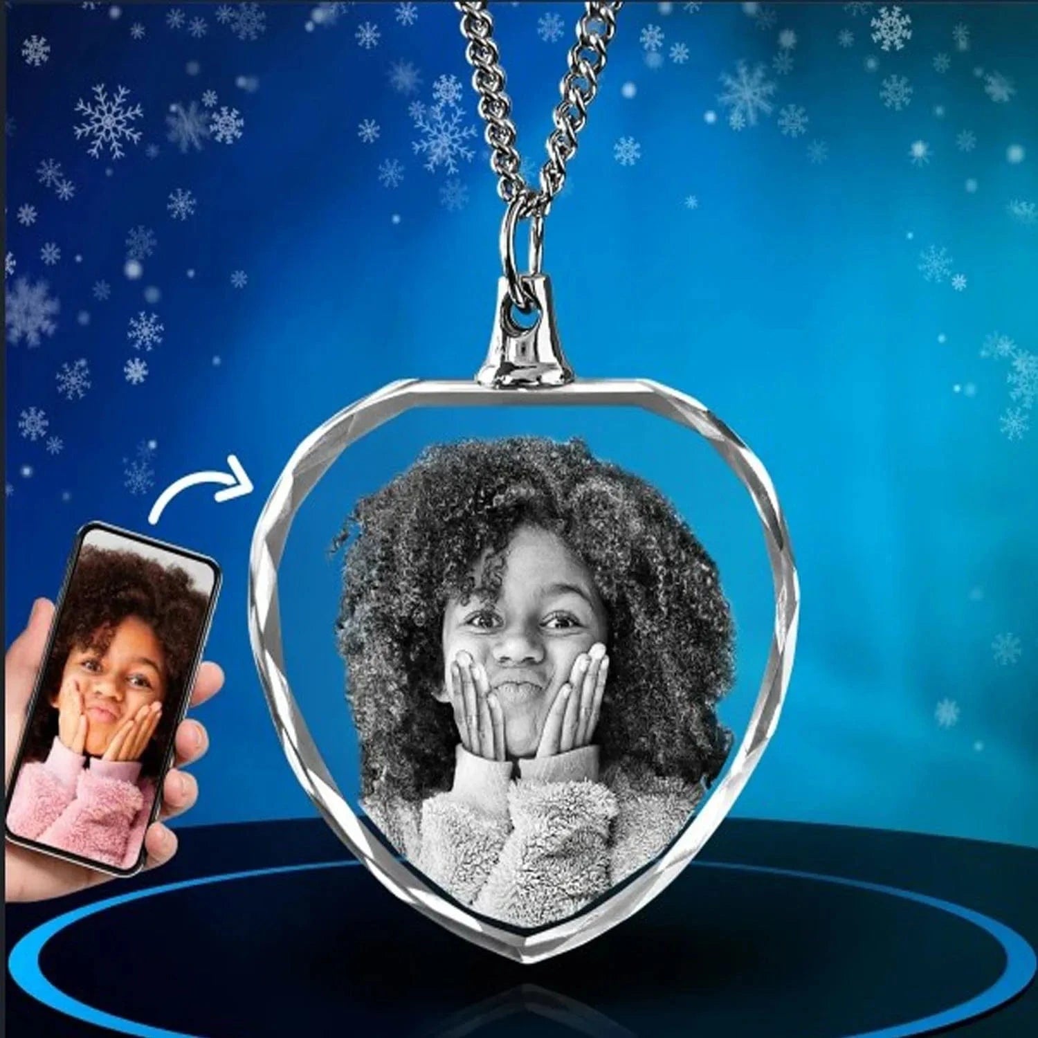 Introducing our Custom 3D Laser Etched Crystal Photo Pendant Necklace, a stunning keepsake designed to honor your most cherished memories. Create a unique, heartfelt piece that shines with elegance. Perfect as a thoughtful gift or a personal statement, this necklace is both a beautiful tribute and a timeless accessory.