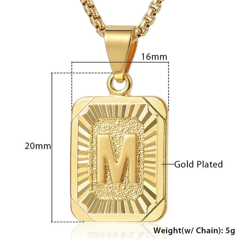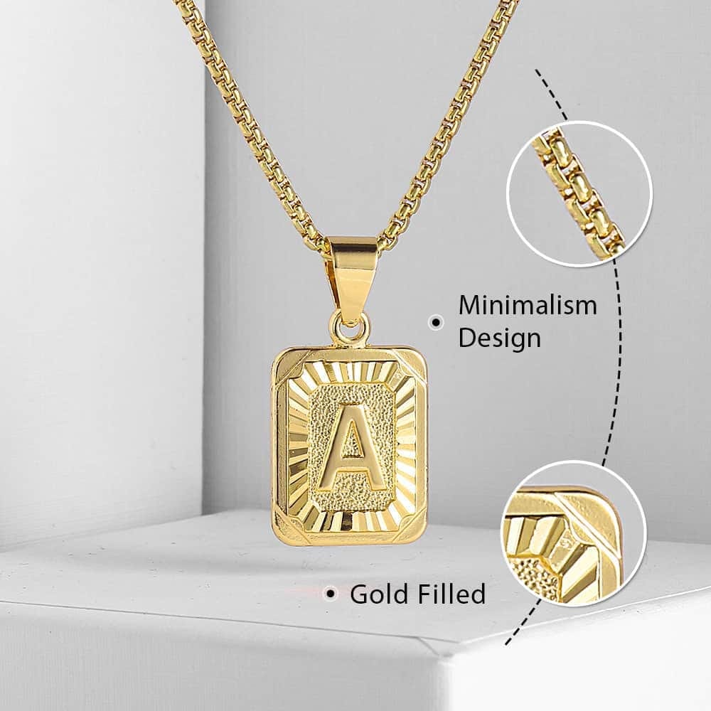 A-Z Initial Pendant & Box Link Chain - Gold/Rose Gold/White Gold