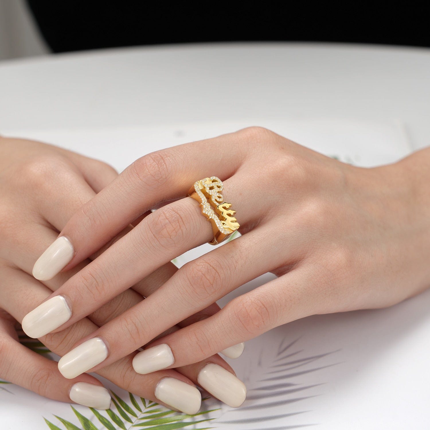 This simplistically stylish "Custom 3D Name Ring" is the perfect universal accessory. 925 silver base, laser cut embossed lettering style with czech crystals! Available in gold, rose gold or silver!