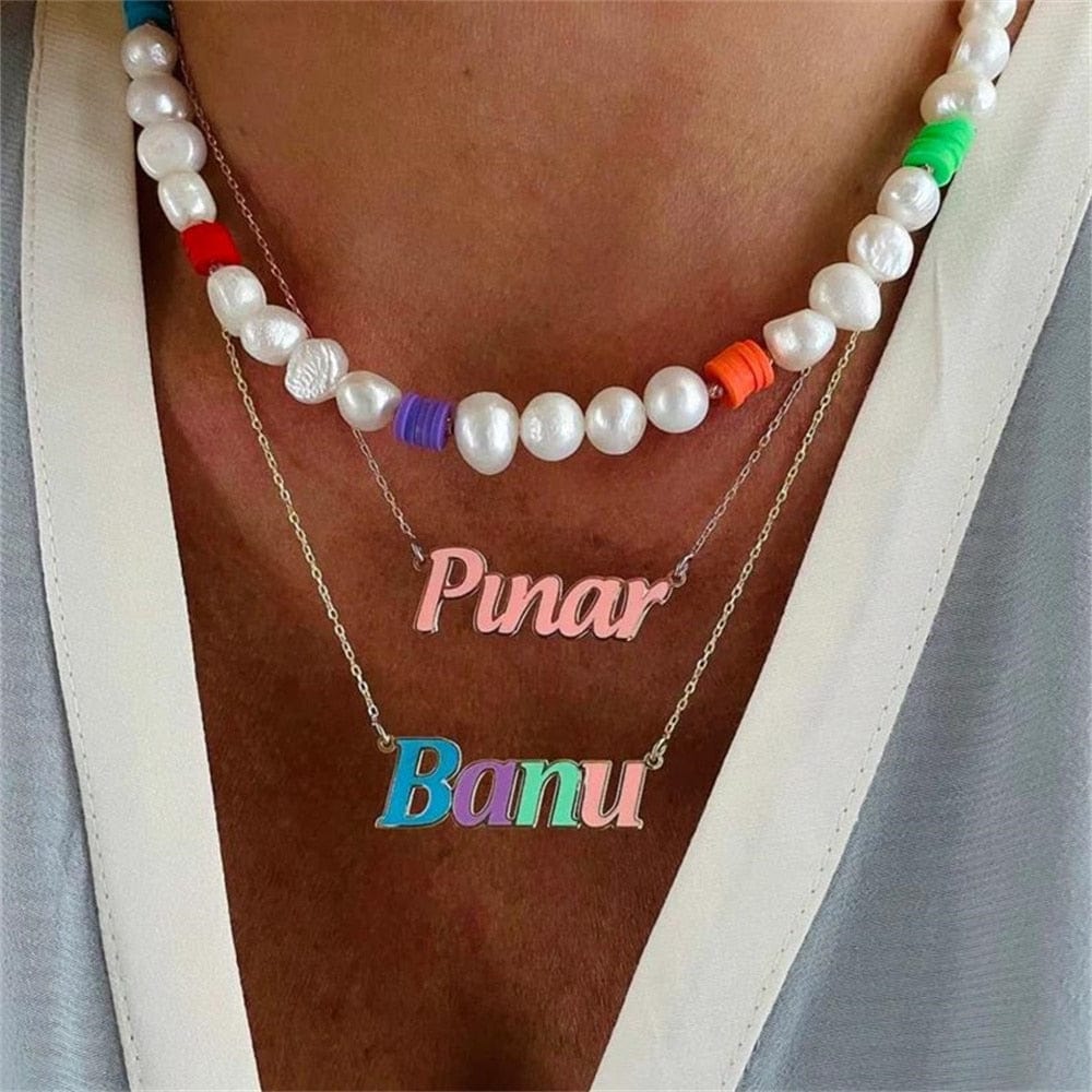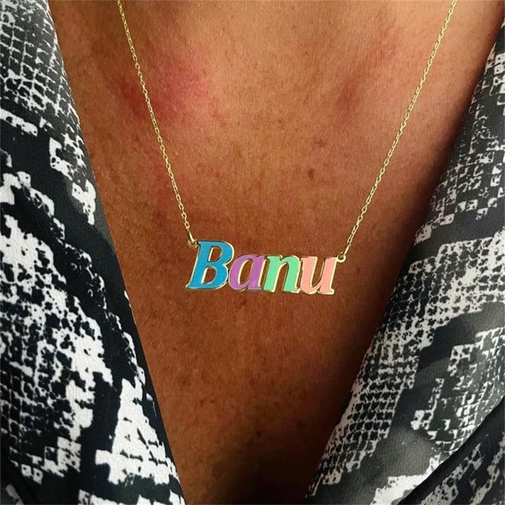 Custom Colorful Enamel Nameplate Necklace