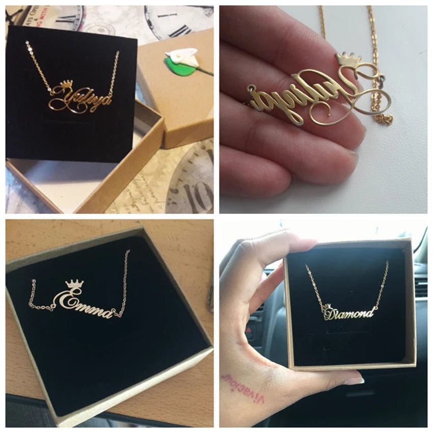 - 1 x Personalized Name Necklace With Crown On First Letter