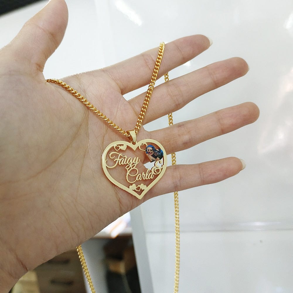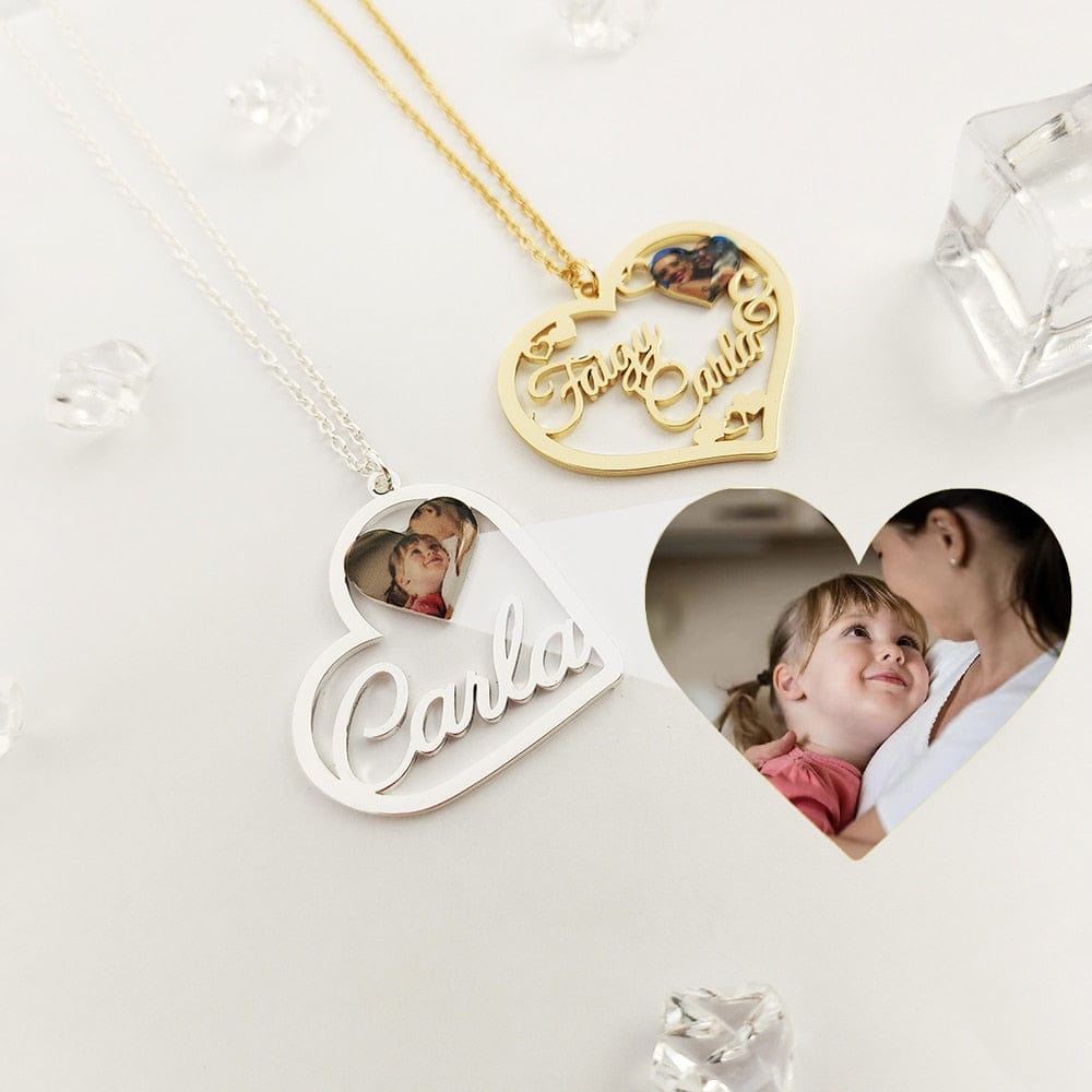 Custom Heart-Shaped Photo & Name Necklace