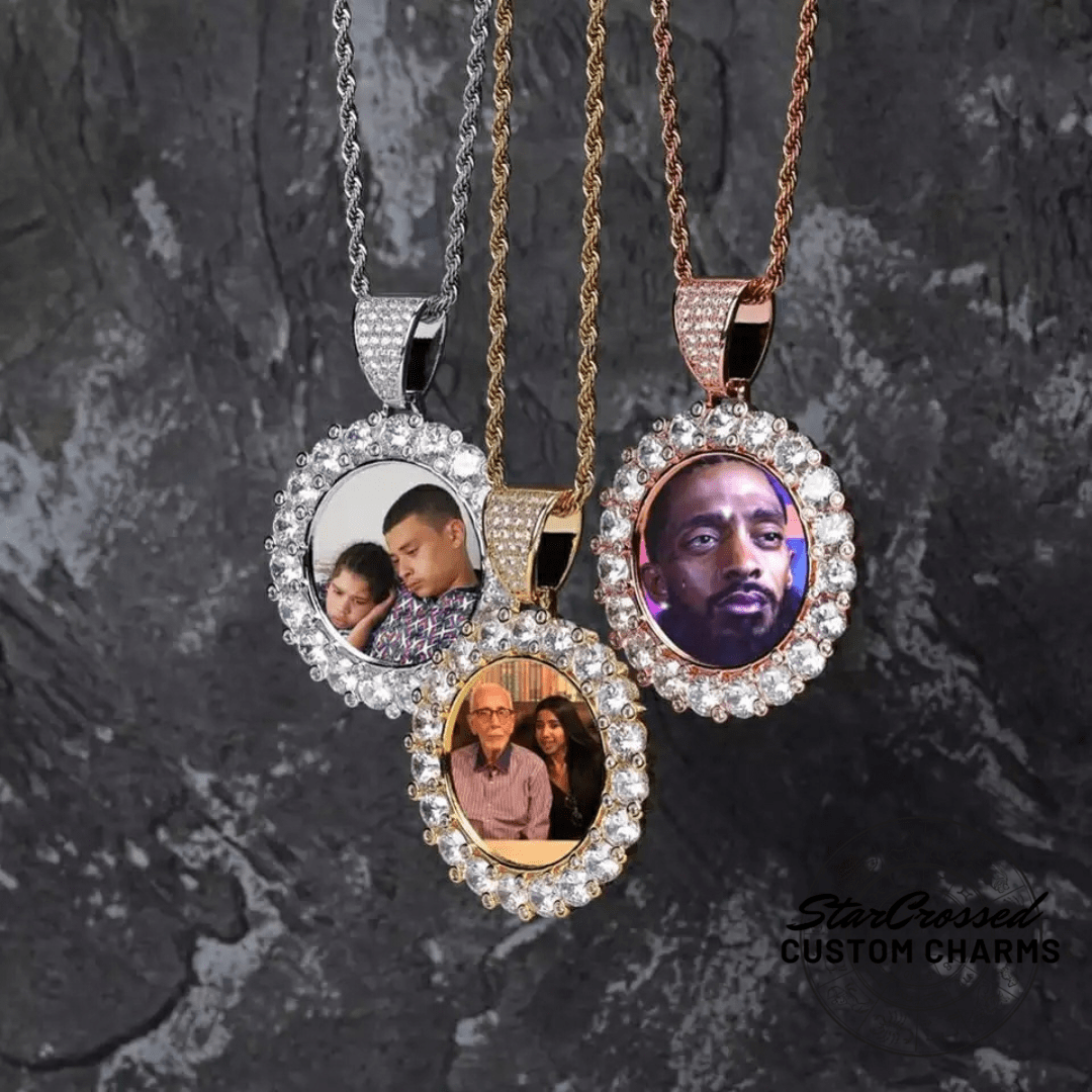 Custom Photo Pendant Necklace With Bouquet Style Setting