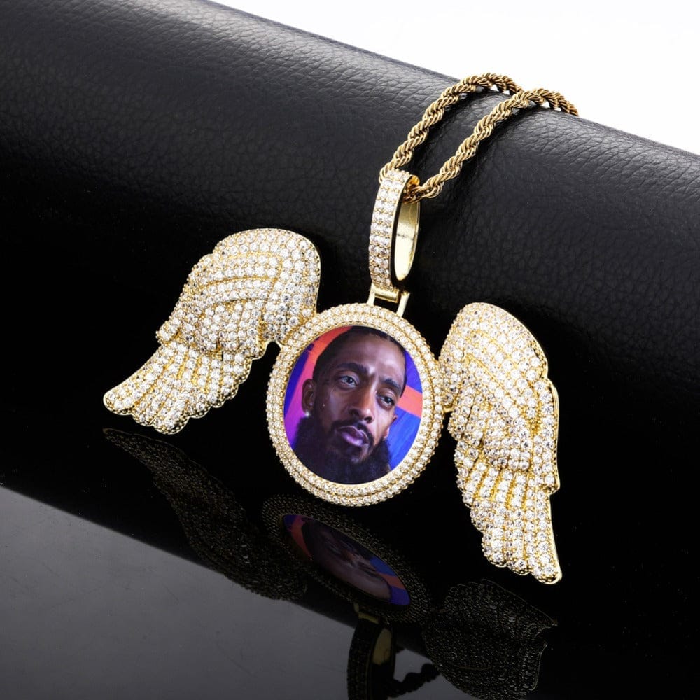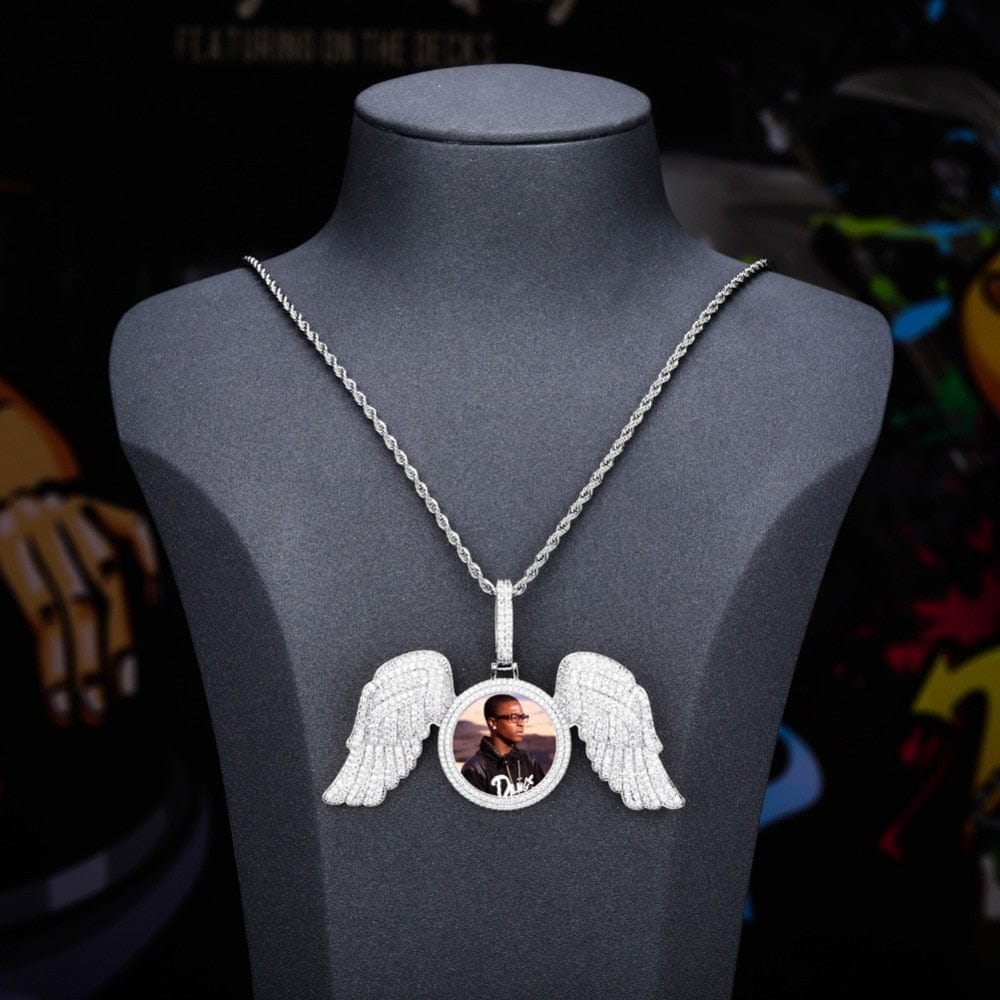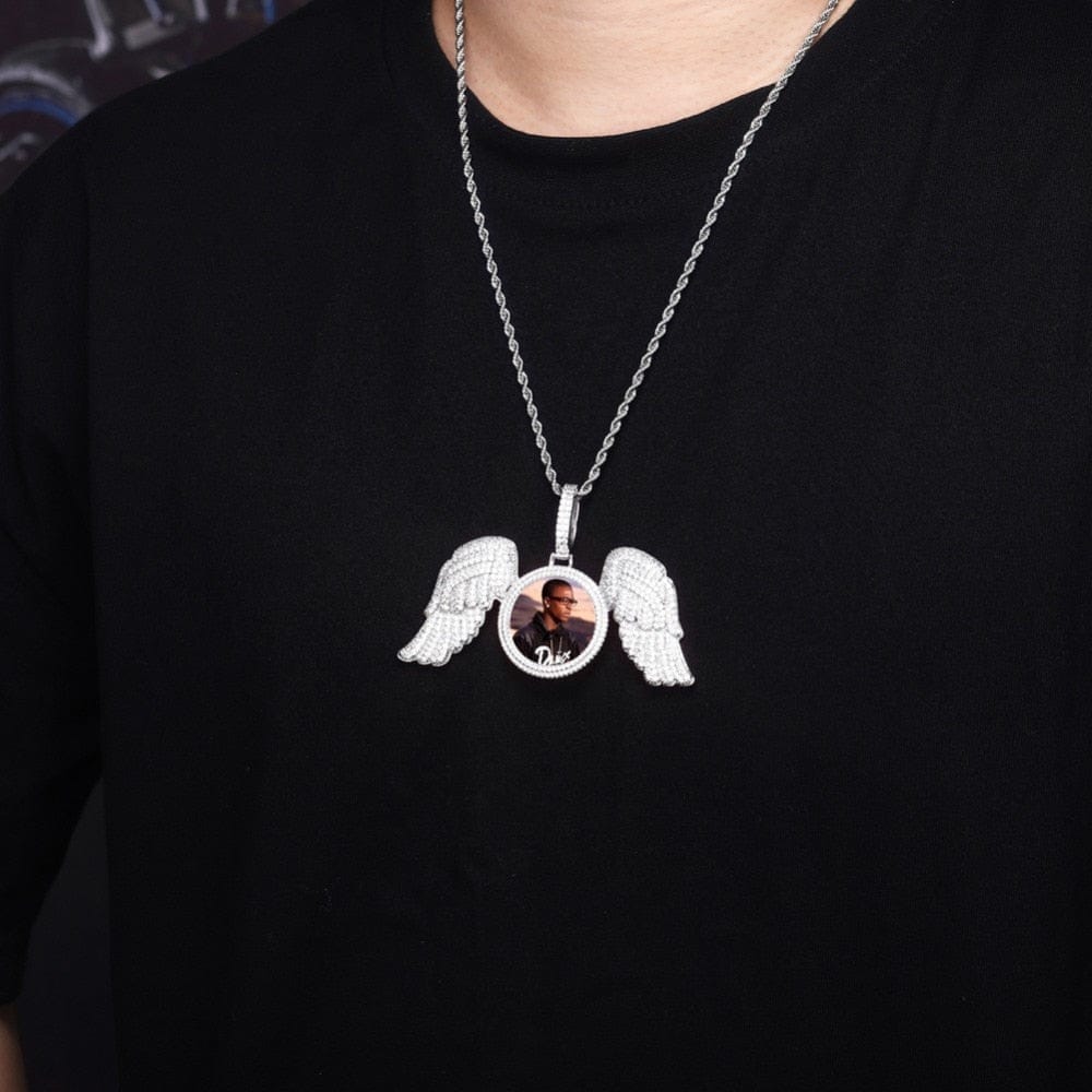 "Gabriels Wings" Custom Photo Pendant Necklace With Long Wings