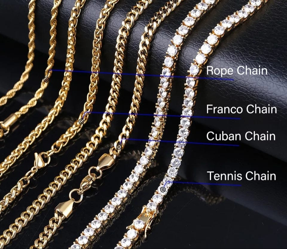 - Choose your desired chain length, link style, pendant size and metal color.