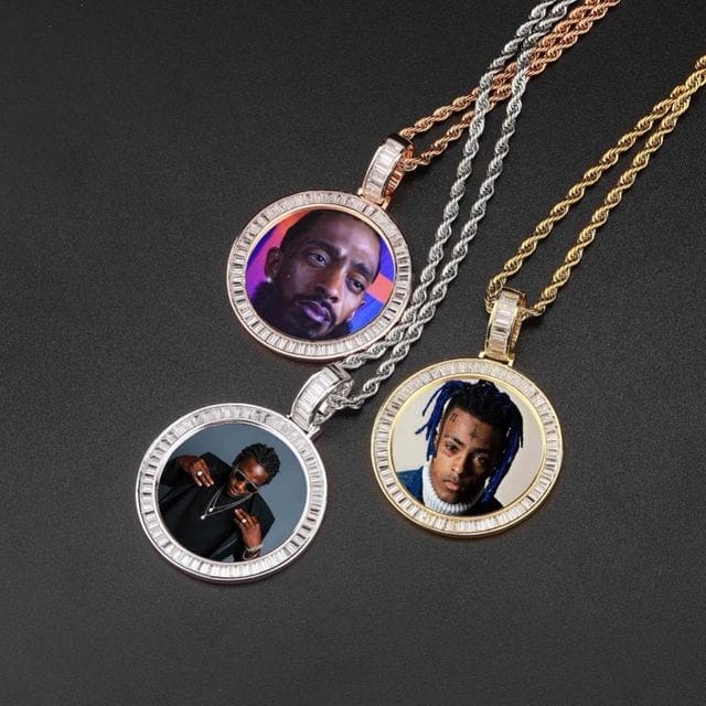 Gold Custom Picture Pendant Necklace With Baguette Border