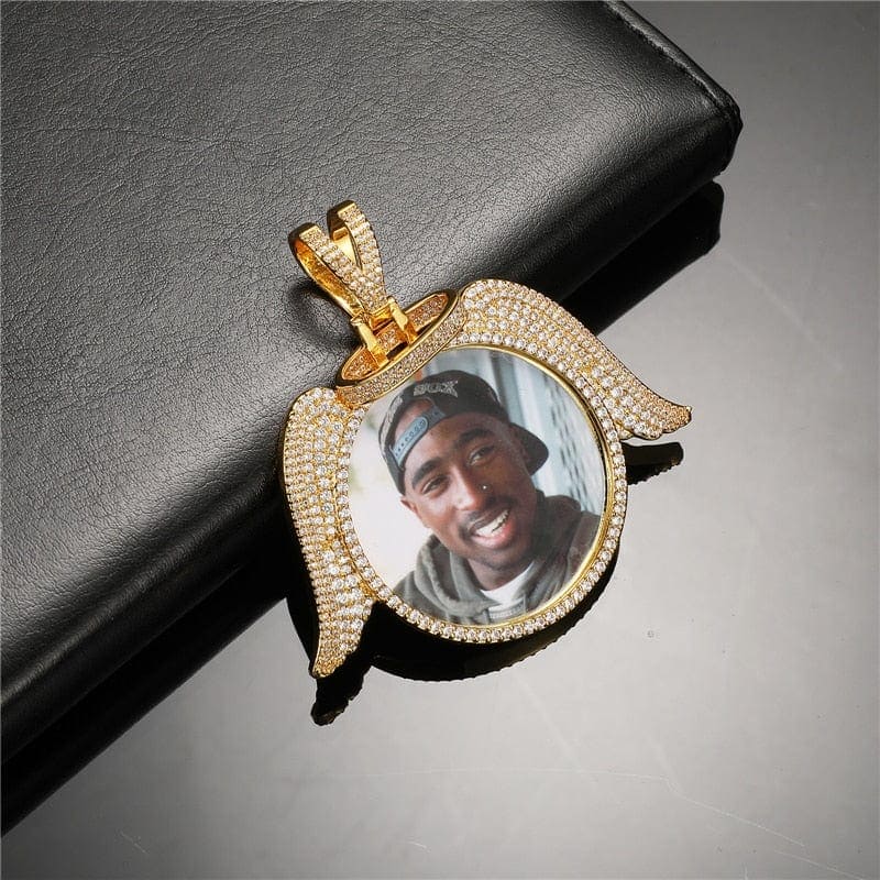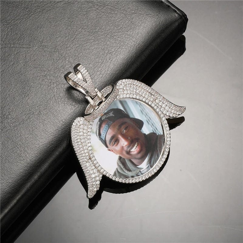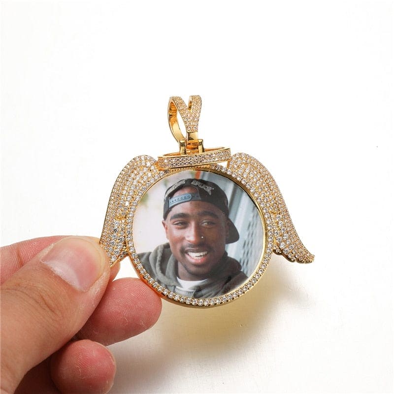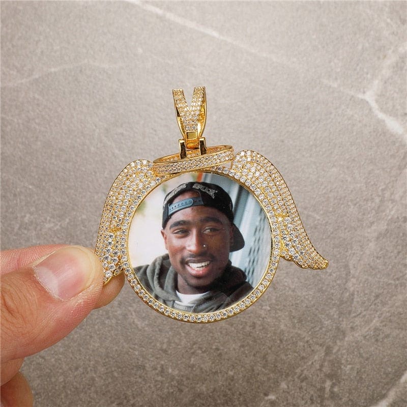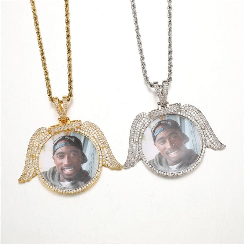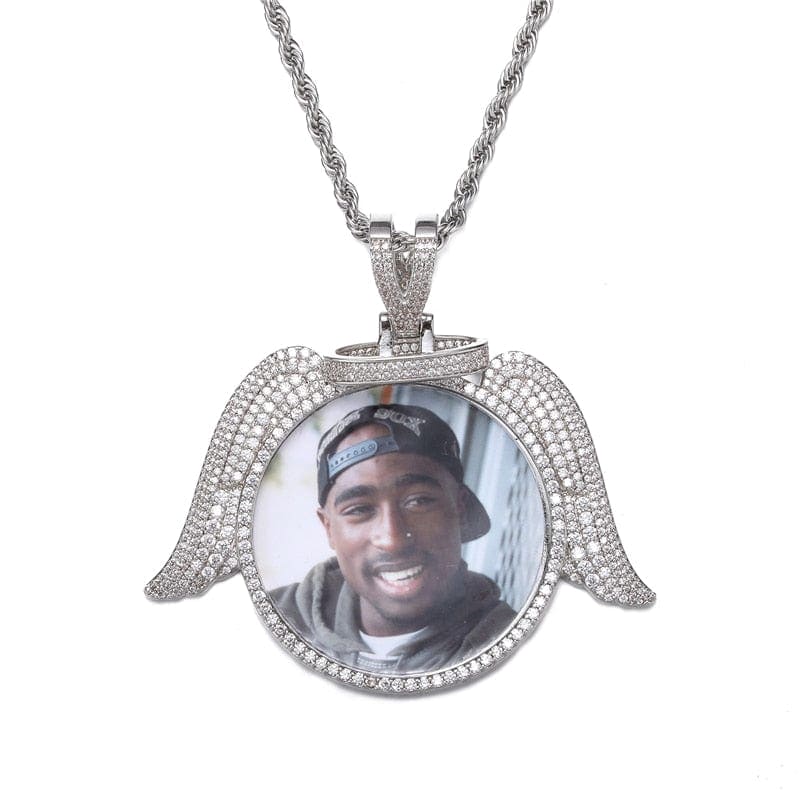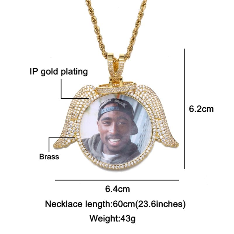 Custom Picture Pendant Necklace With Angel Wings & Halo