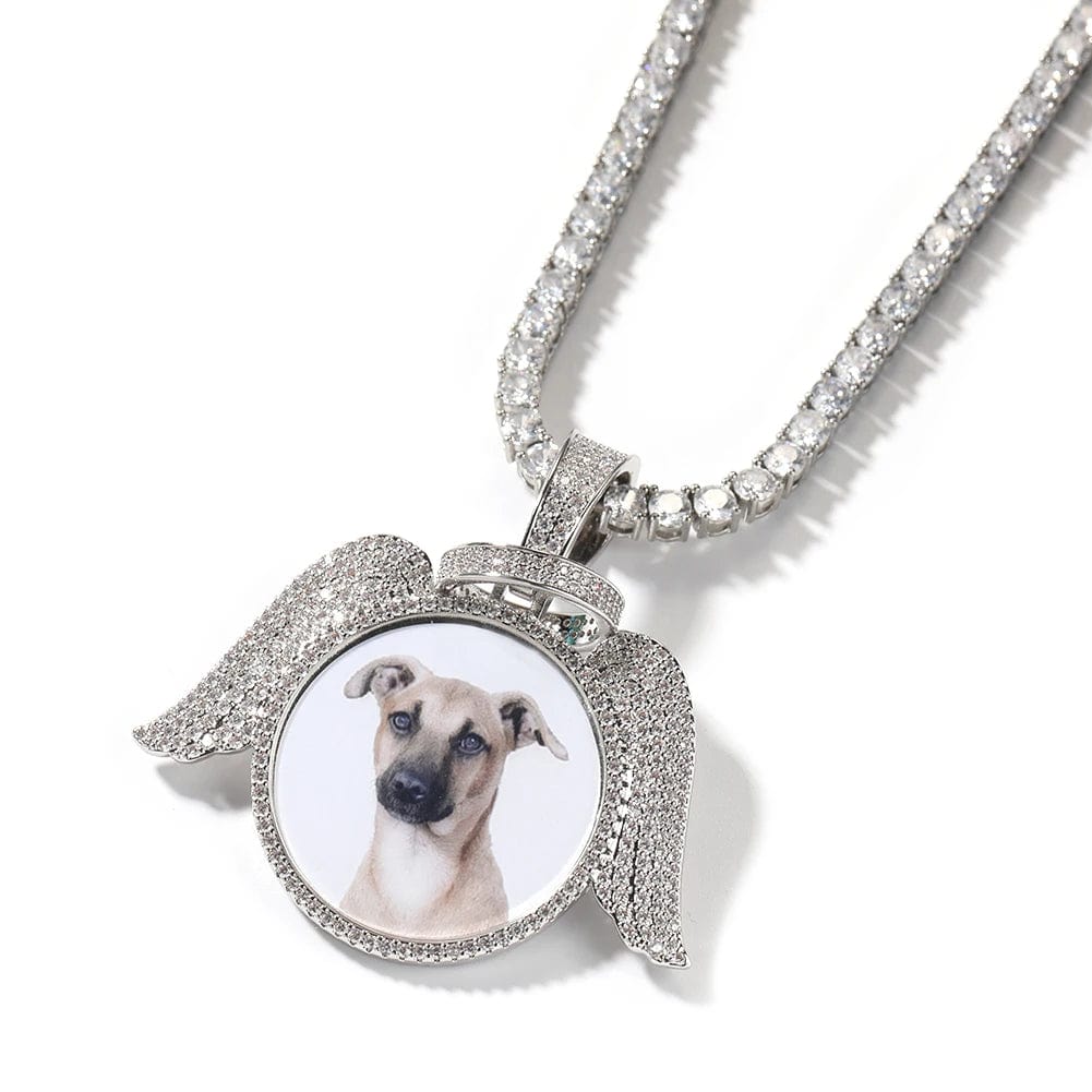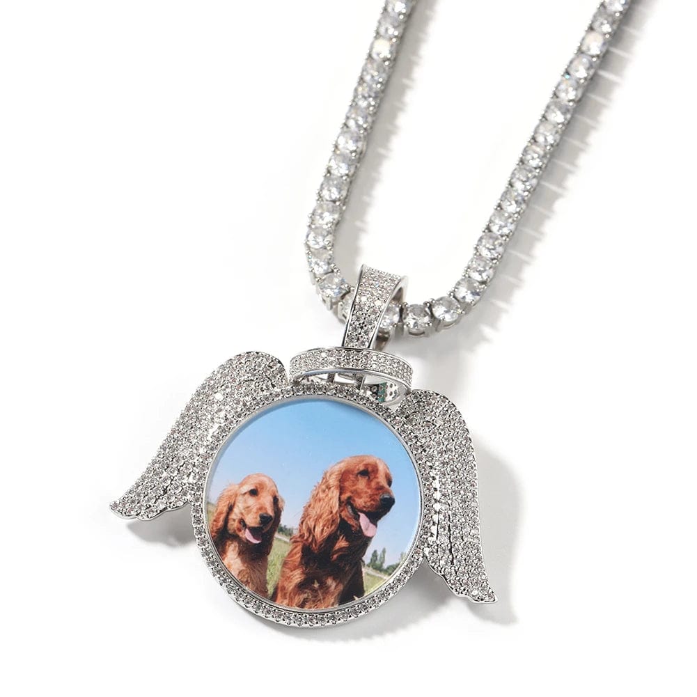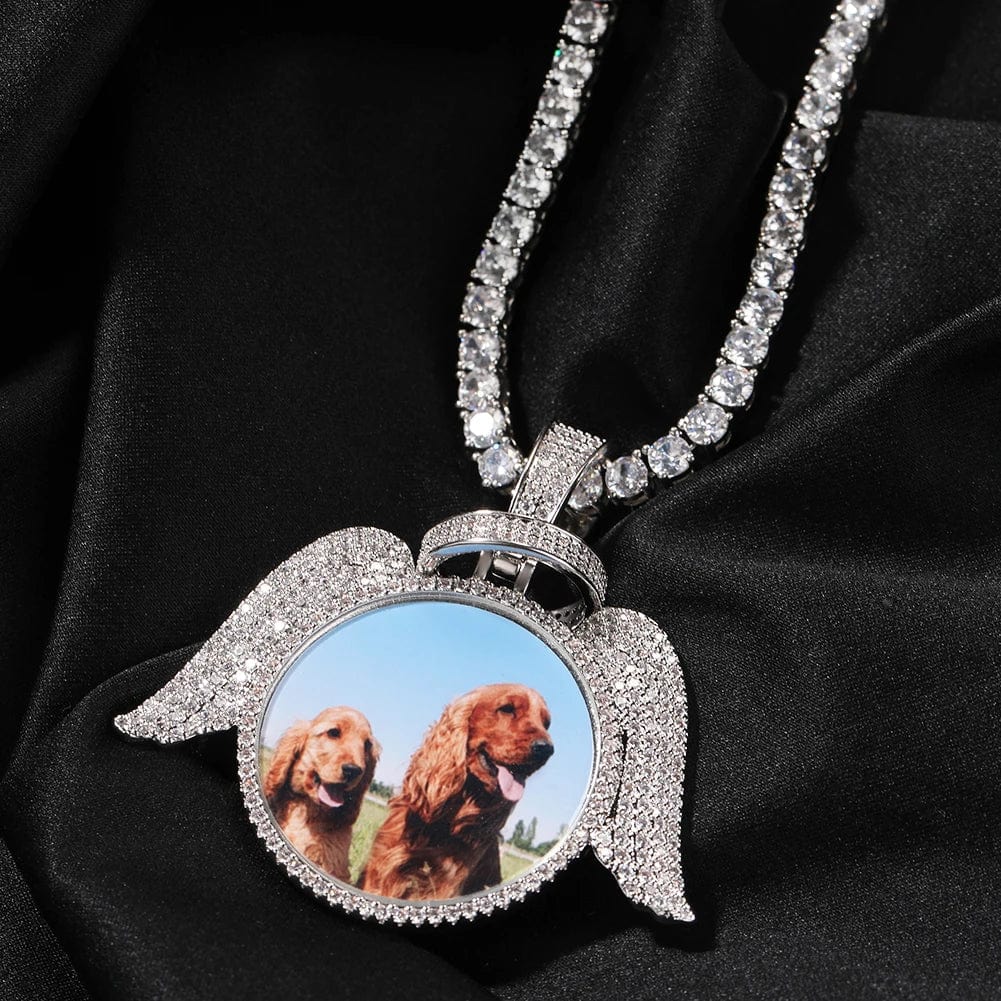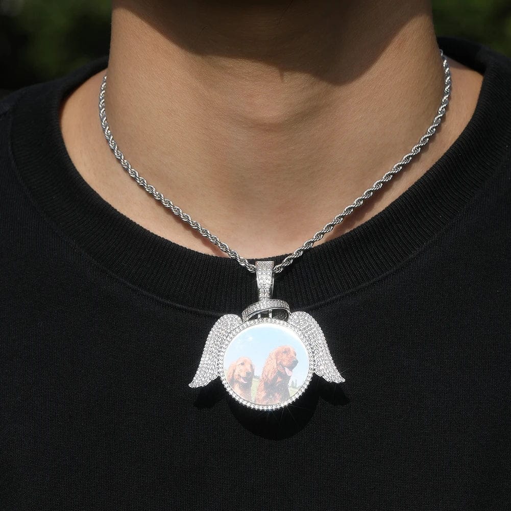 Introducing our Custom Round Angel Wings & Halo Photo Pendant Necklace, a stunning keepsake designed to honor your most cherished memories. Crafted in gold or silver, this personalized pendant features intricate angel wings and a halo surrounding your custom photo. Choose between a rope, Cuban, or tennis necklace to match your style, creating a unique, heartfelt piece that shines with elegance. Perfect as a thoughtful gift or a personal statement, this necklace is both a beautiful tribute and a timeless accessory.