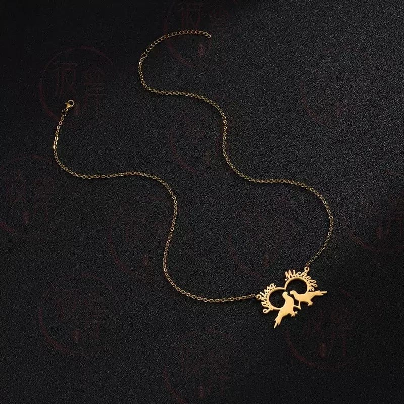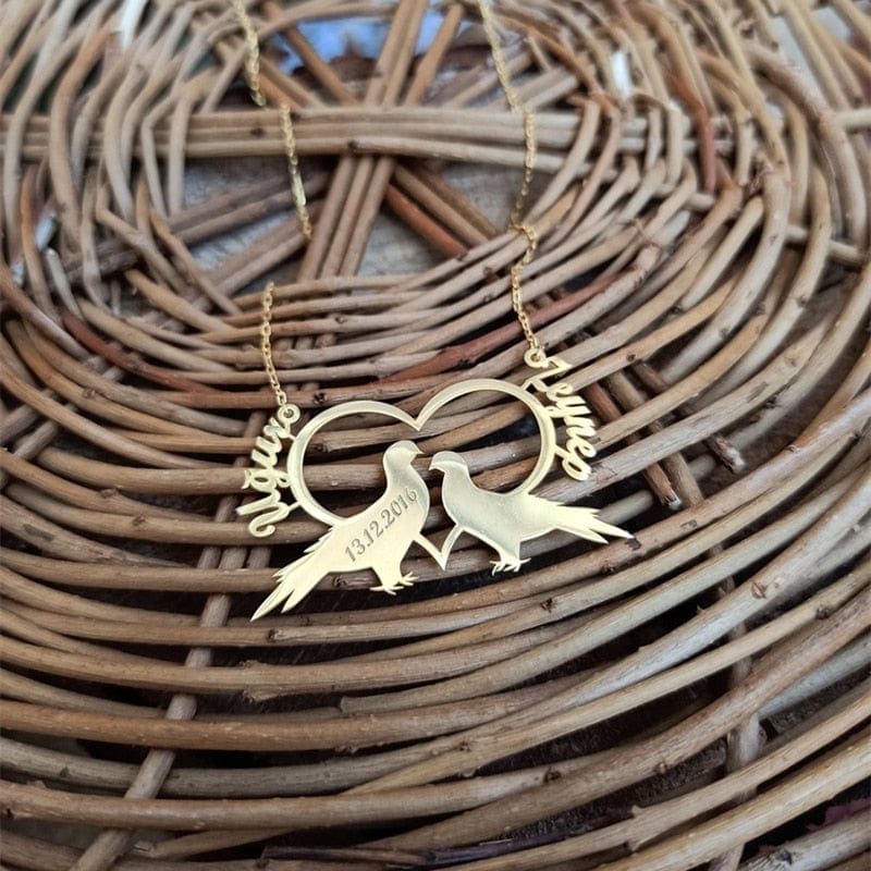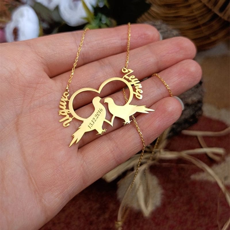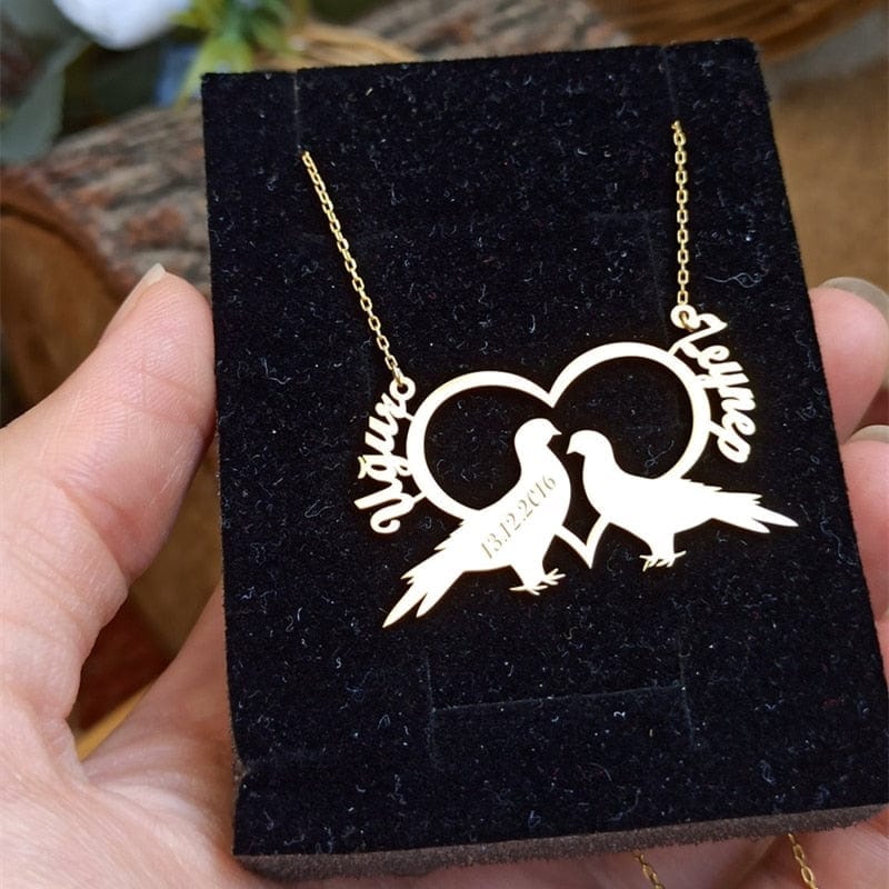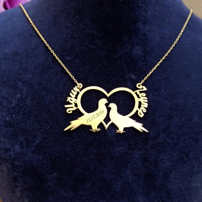 - 1 x Personalized Two-Name Love Birds Pendant Necklace