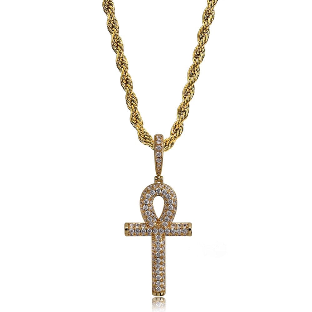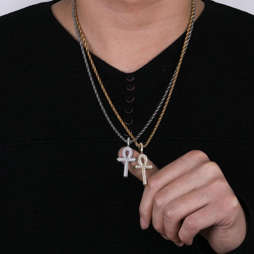 Egyptian Ankh Cross Pendant Necklace With AAA Zircons - Gold, Silver