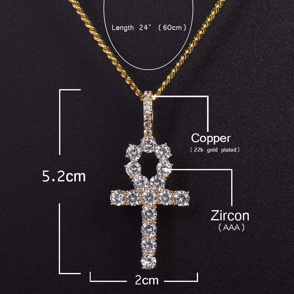 Gold Ankh/Cross Necklace Set With Zircon Diamonds