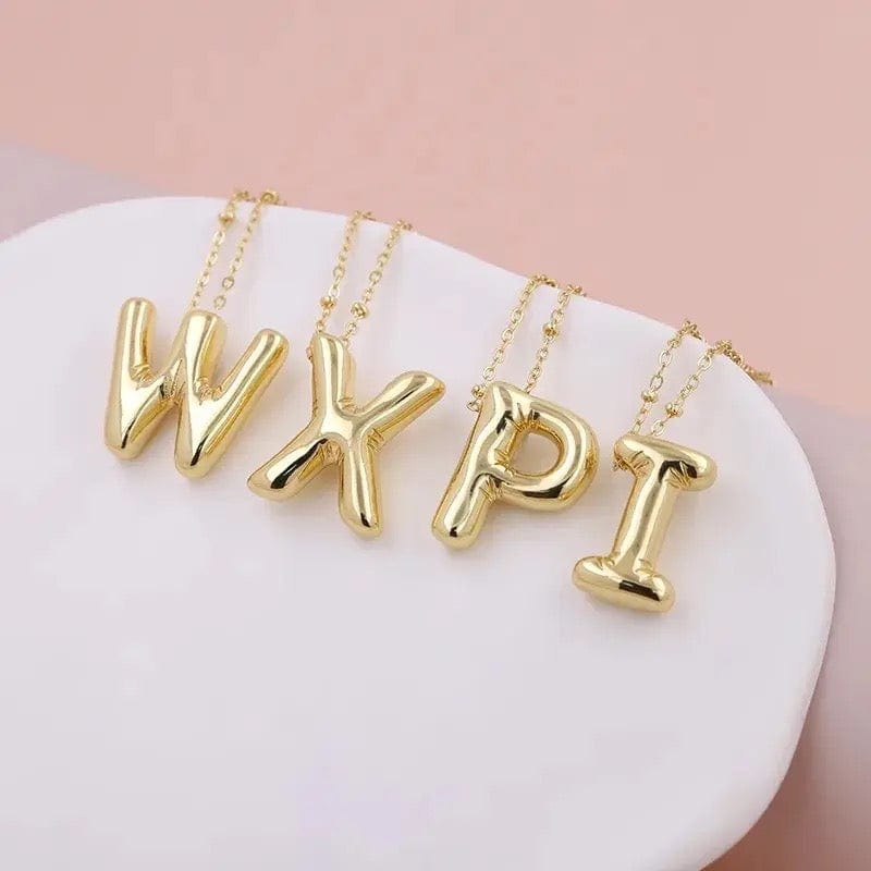 Gold Balloon Bubble Letter Initial Pendant Necklace