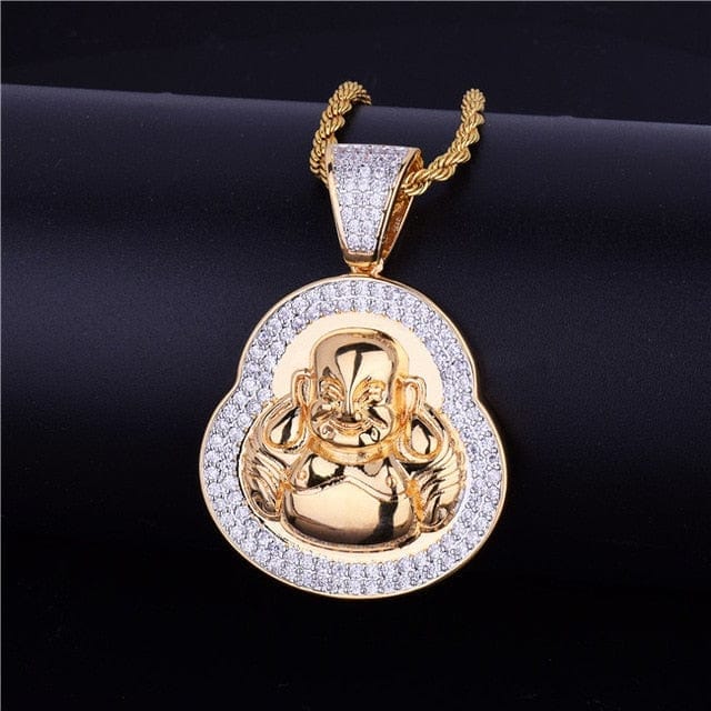 Gold Buddha Pendant With AAA Zircon Diamonds & Chain