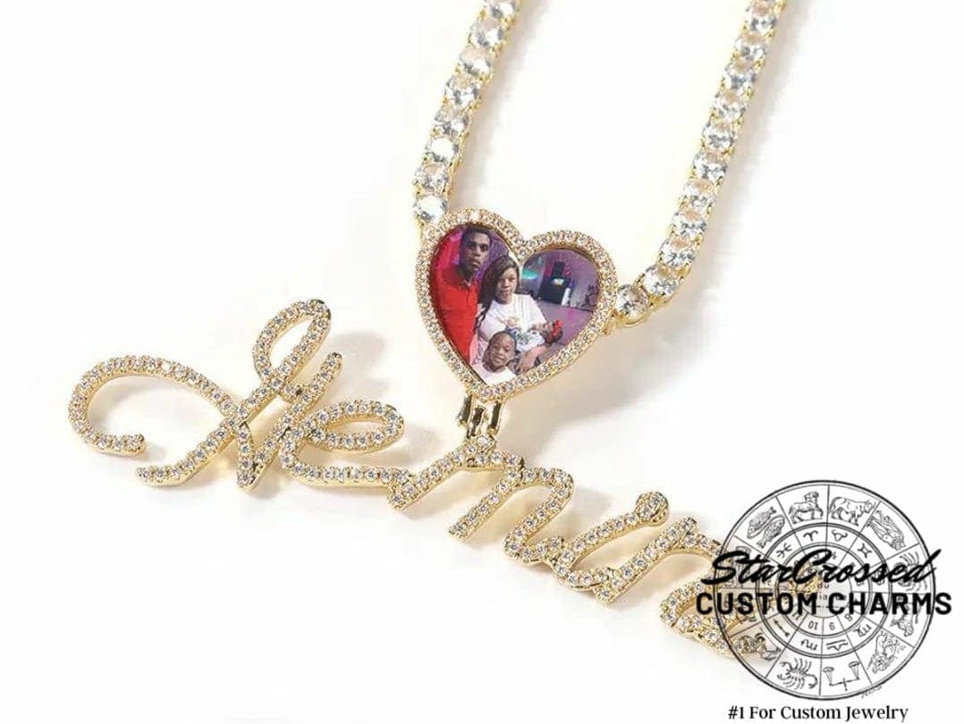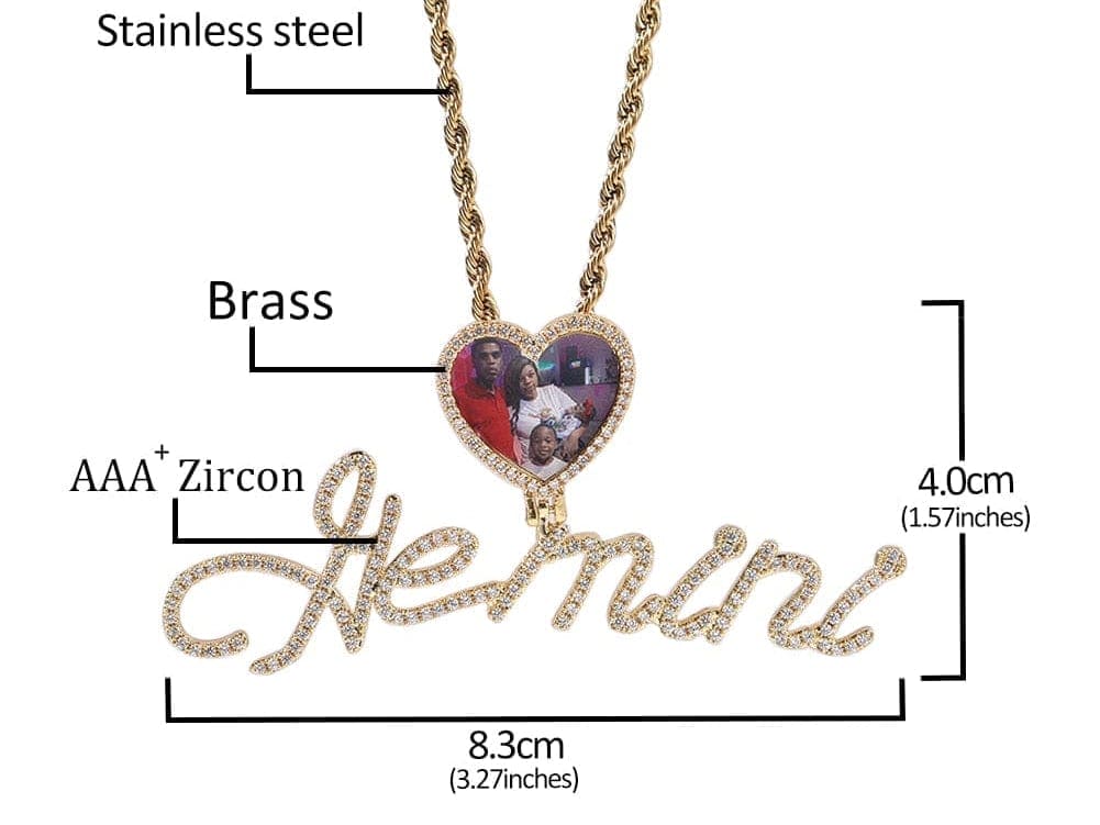 Introducing our stunning and unique heart-shaped photo pendant necklace with an attached name pendant! This beautiful unique piece is the perfect way to keep your loved ones close to your heart. Simply upload your favorite photo of your sweetheart, family member or fur baby and include a name or short message!