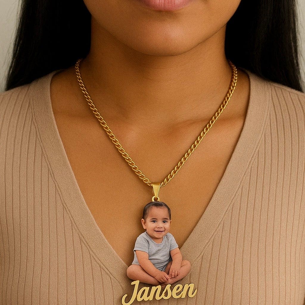 Custom Cut-Out Photo Necklace With Name