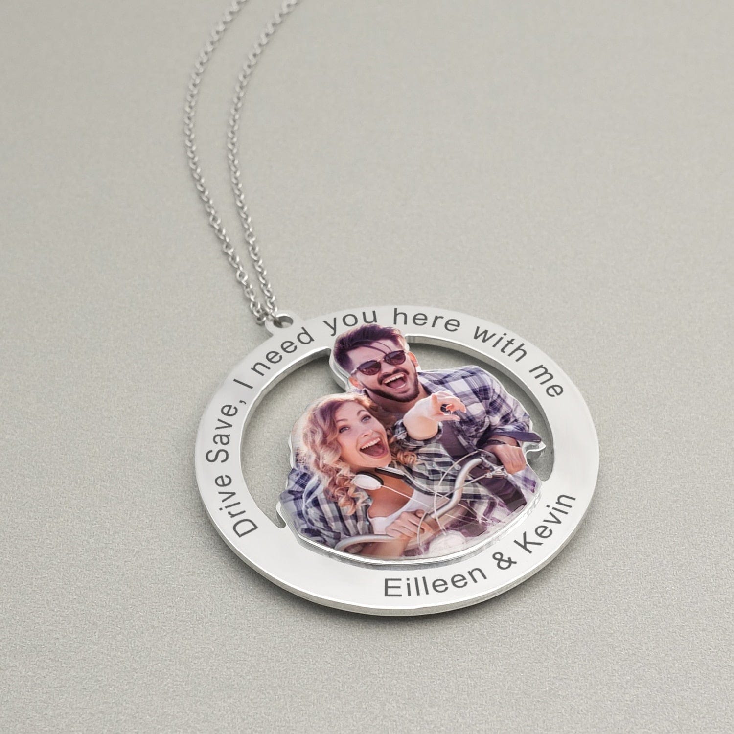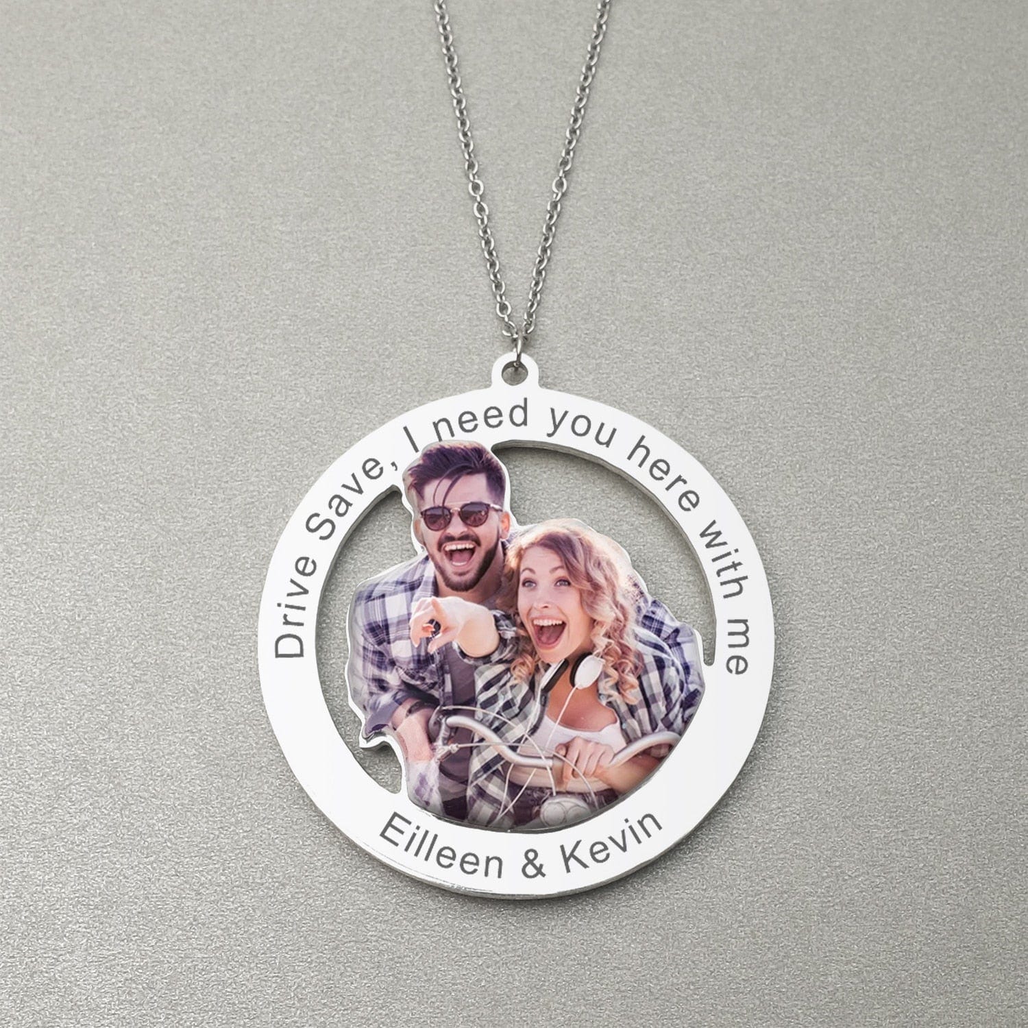 Personalized Hanging Car Ornament With Engraved Photo Charm