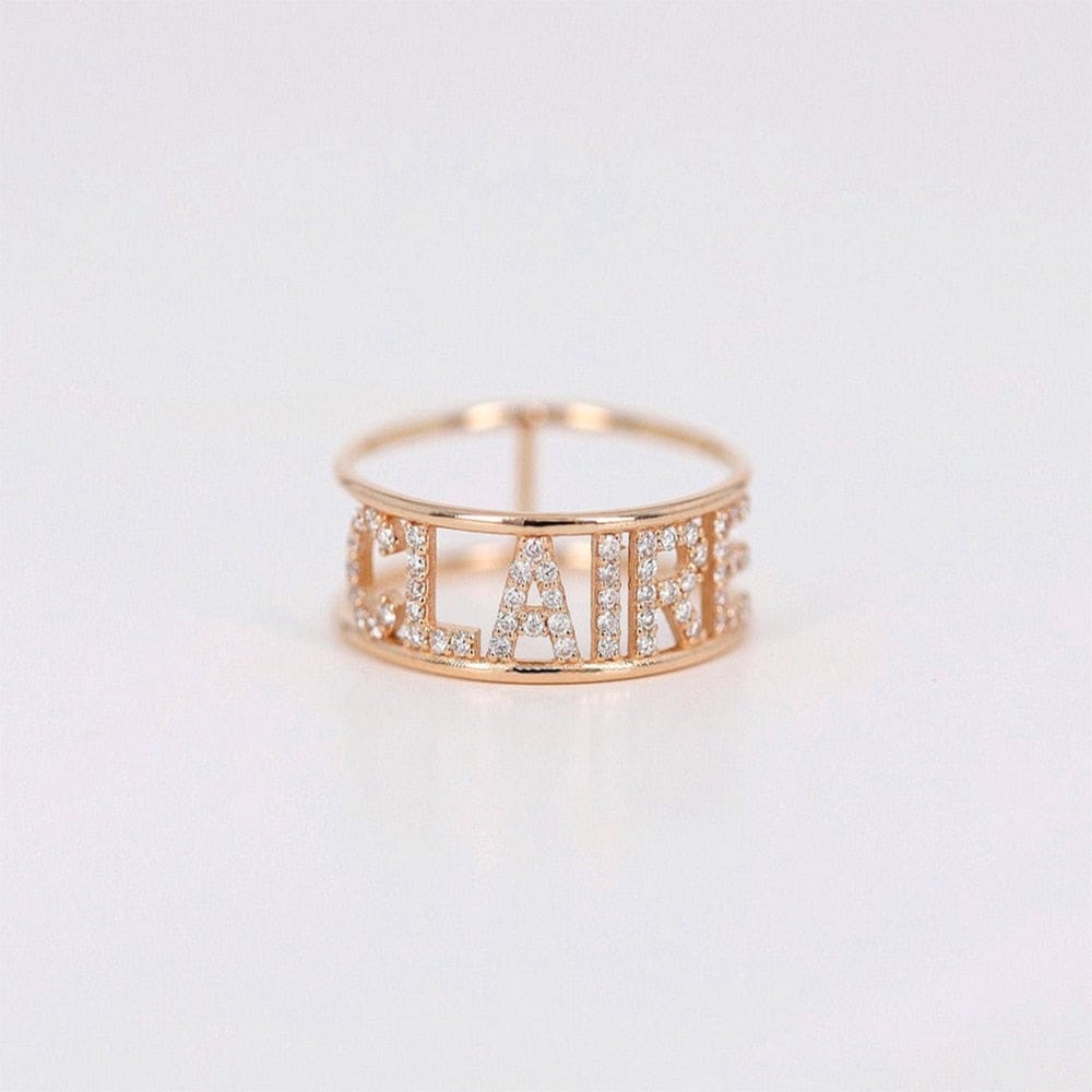Looking for the perfect accessory to compliment any style? This stunning crystal personalized name ring with pavé setting will stand out in any room! Goes with every look and comes in Gold, Rose Gold or Silver! We have the best quality & the best prices for custom jewelry!