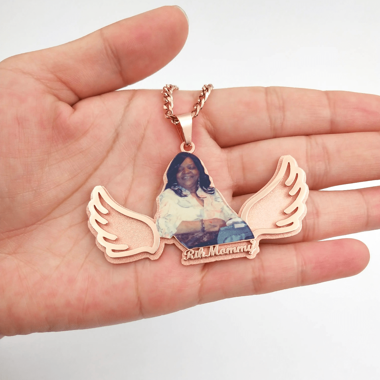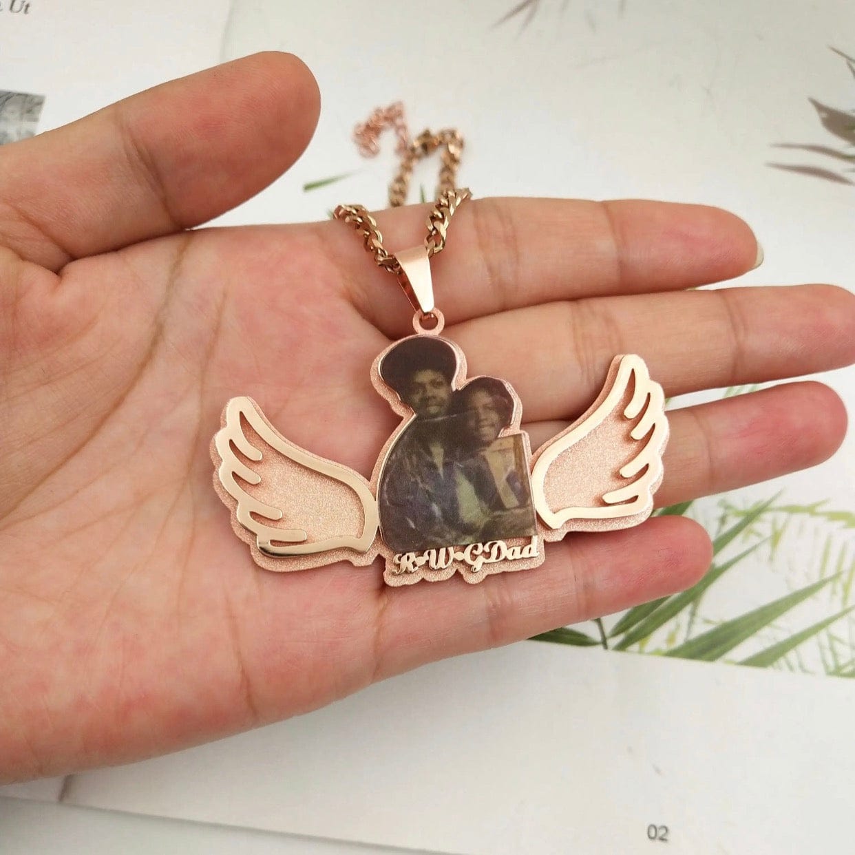 Capture precious memories and start conversationsĀ with this beautiful uniqueĀ Custom 3D Picture Pendant Memorial Necklace With Angel Wings!