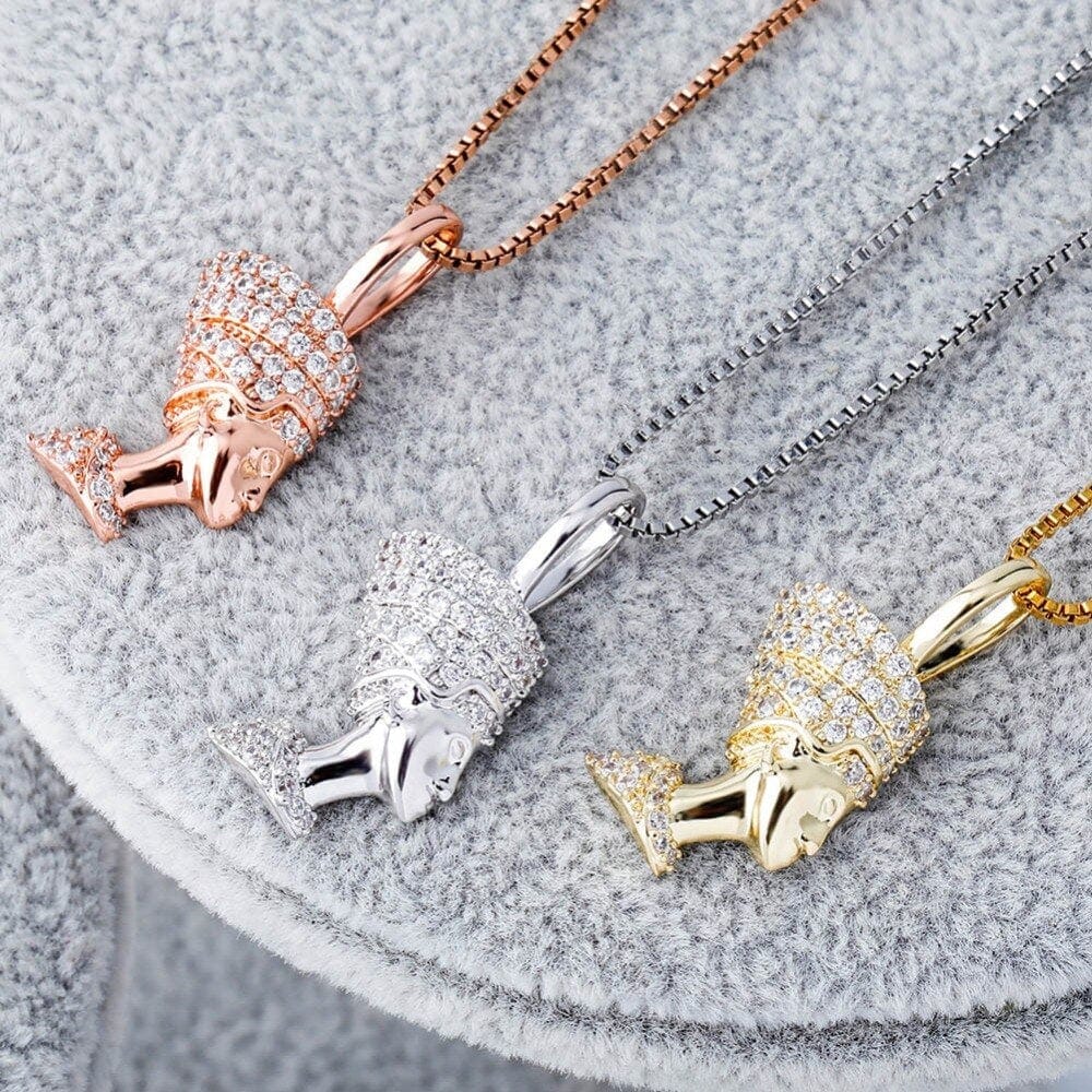 Light up the room and steal eyes with these high quality gorgeous iconic Queen Nefertiti Pendant Necklaces! These beauties are made of 100% 925 Silver base and come in Gold, White Gold, or Rose Gold, with a free Venetian box link chain! We have the best value and quality for charm necklaces!