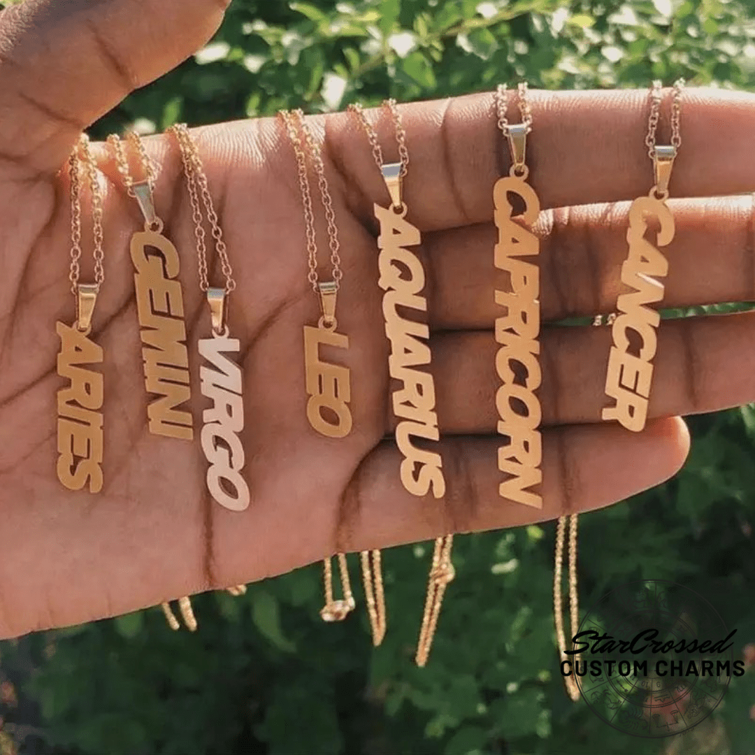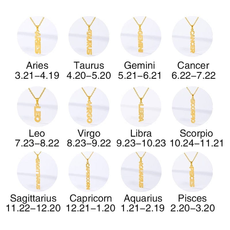 One of the best conversation starters is "What's your zodiac sign?". Our beautiful, eye catching "Vertical Text Zodiac Pendants" are the perfect introduction to you! Comes in gold and silver! Compliments every look!